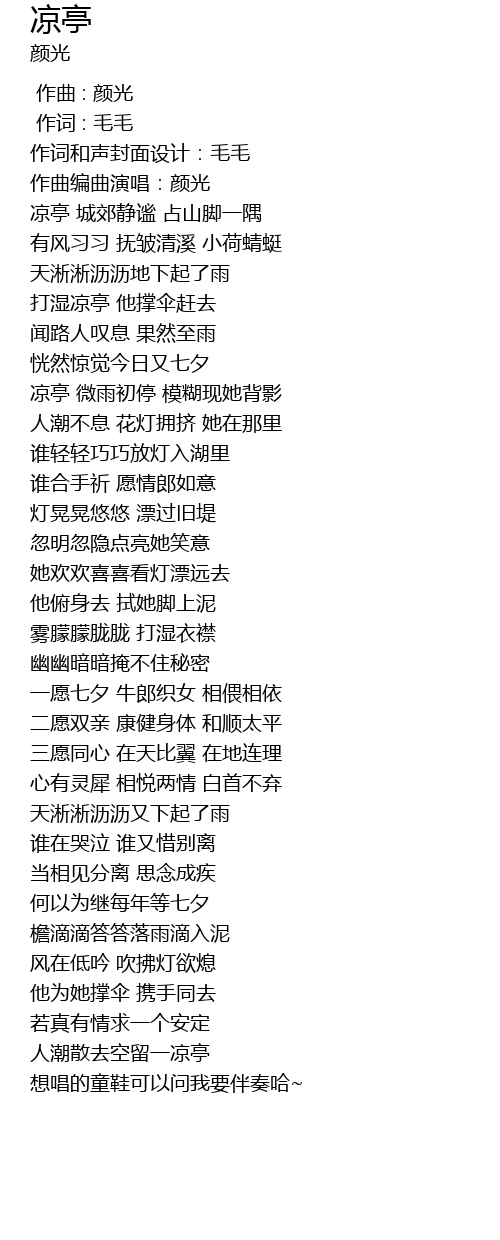 | [00:04.255] | 作曲编曲演唱:颜光 |