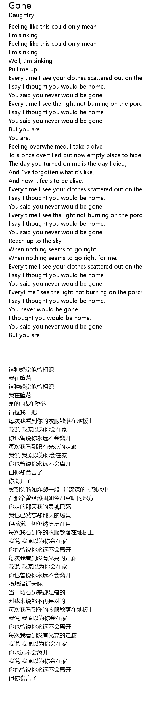 | [00:42.10] | You said you never would be gone. |