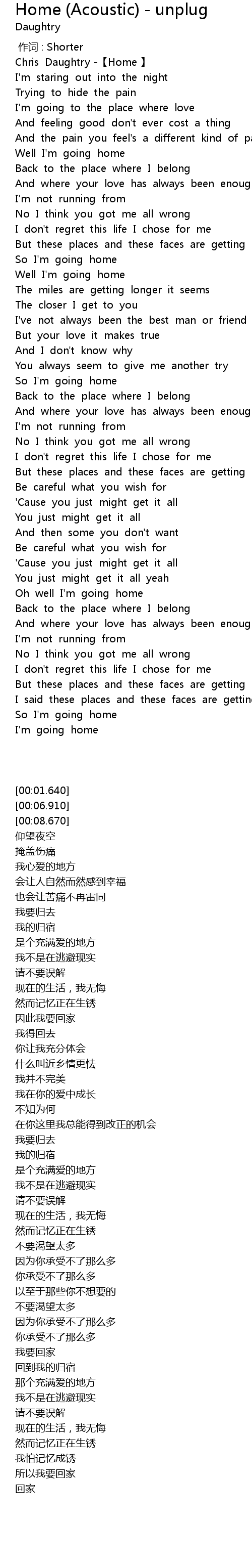 | [00:01.640] | Chris Daughtry -【Home 】 |