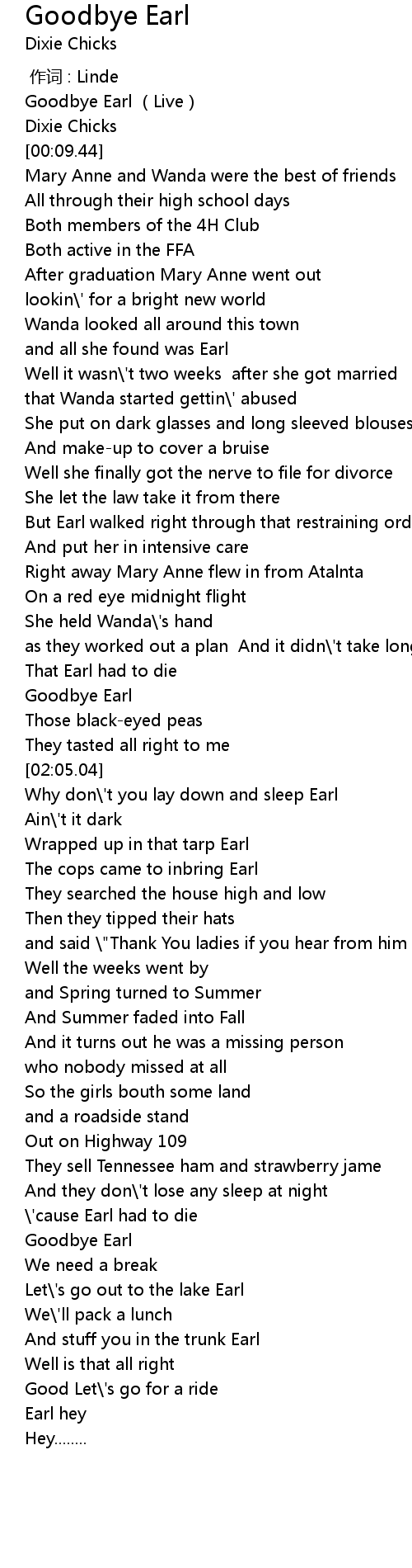 | [01:54.92] | Goodbye Earl |