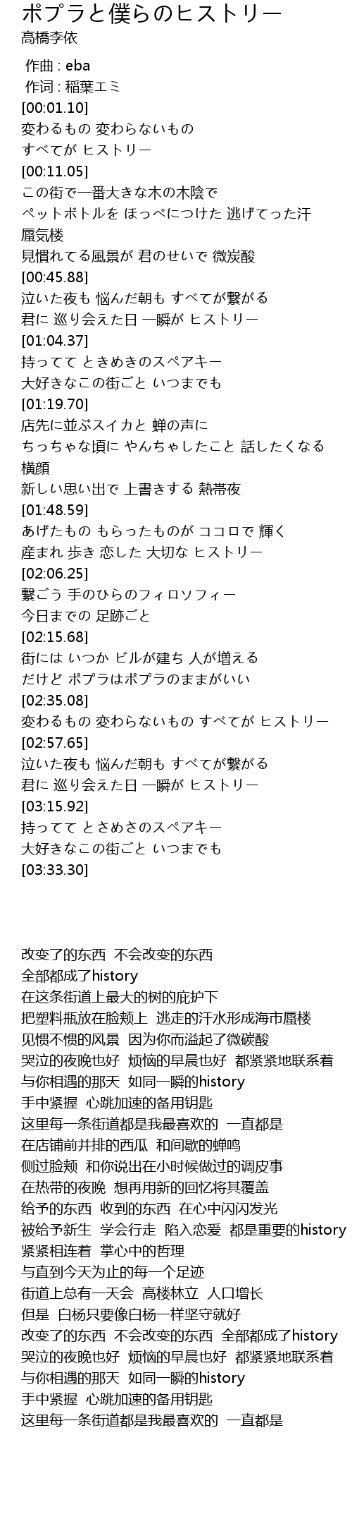 | [02:48.54] | 変わるもの 変わらないもの すべてが ヒストリー |