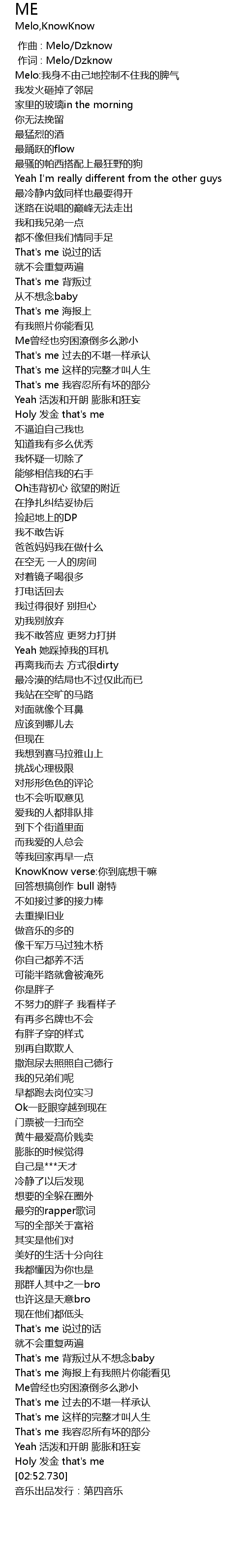 | [00:01.000] | 作词 : Melo/Dzknow |