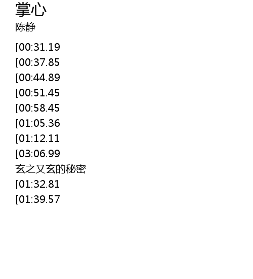 | [03:36.04][03:06.99][01:19.02] | 摊开你的掌心 让我看看你 玄之又玄的秘密 |
