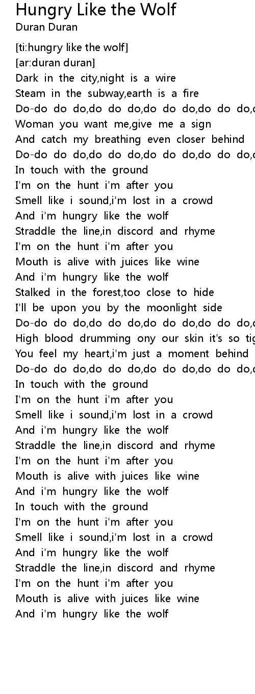 And i'm hungry like the wolf |