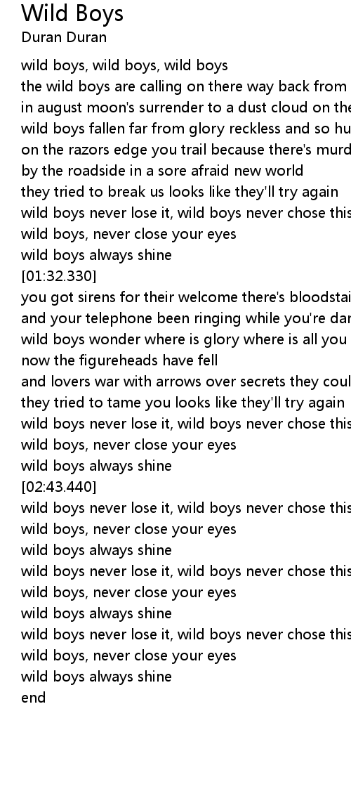 wild boys, wild boys, wild boys |