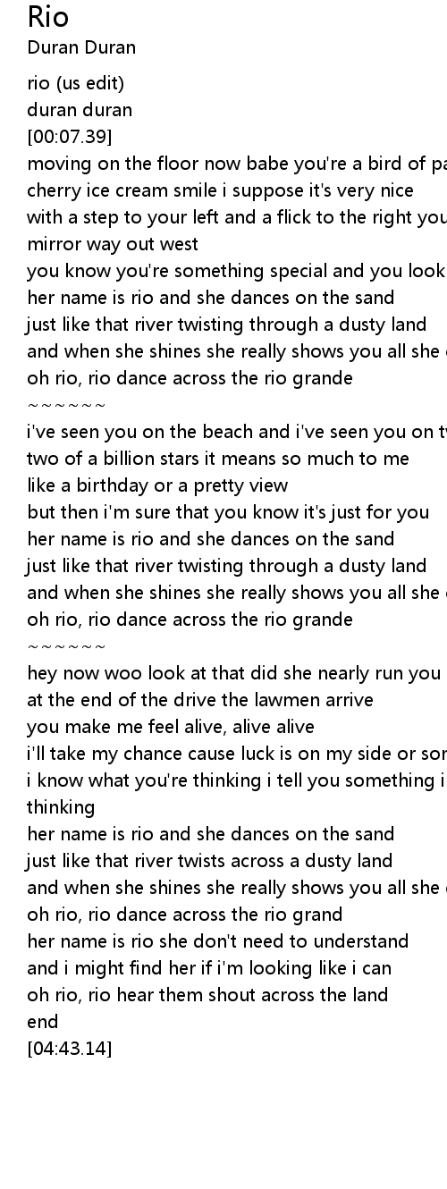 her name is rio and she dances on the sand |