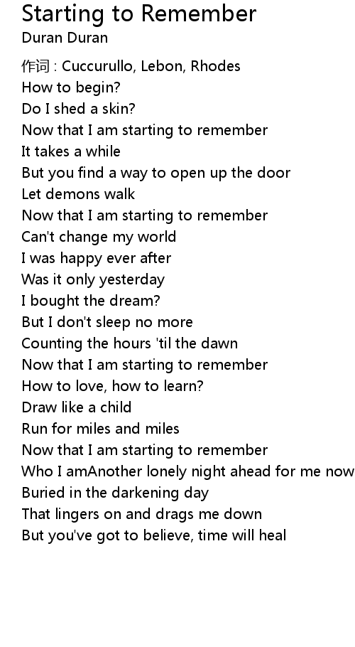 | Song | Starting to Remember |