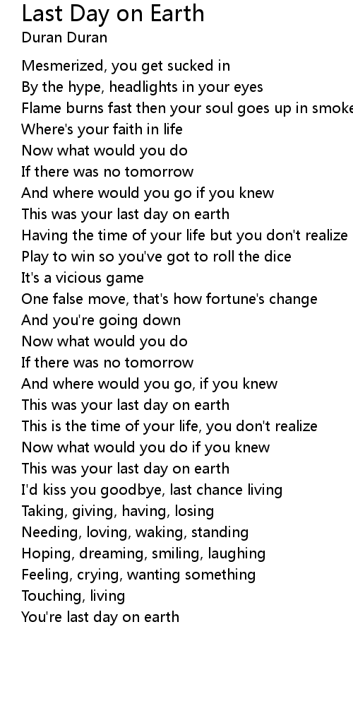 You're last day on earth |