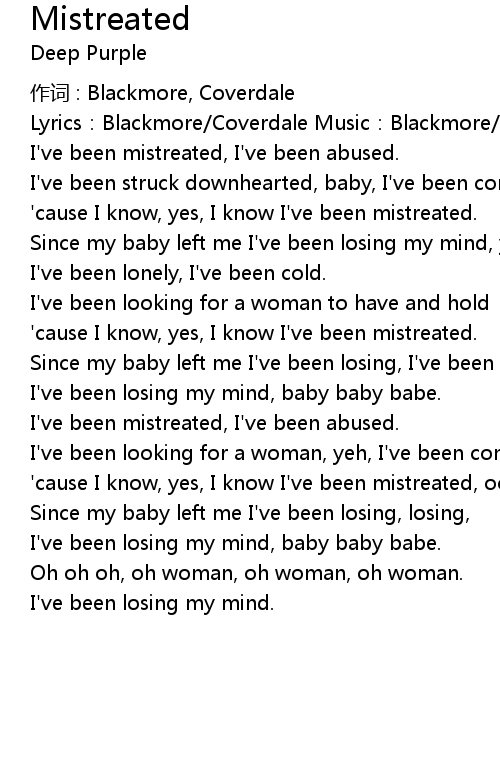 | ' cause I know, yes, I know I' ve been mistreated, ooh oooh. | |