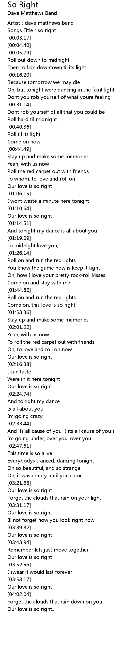 | [00:02.04] | Songs Title: so right |