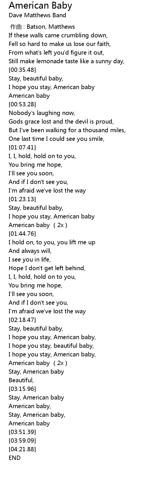 | [00:43.01] | I hope you stay, American baby |