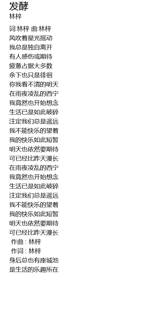 | [00:01.000] | 作词 : 林梓 |