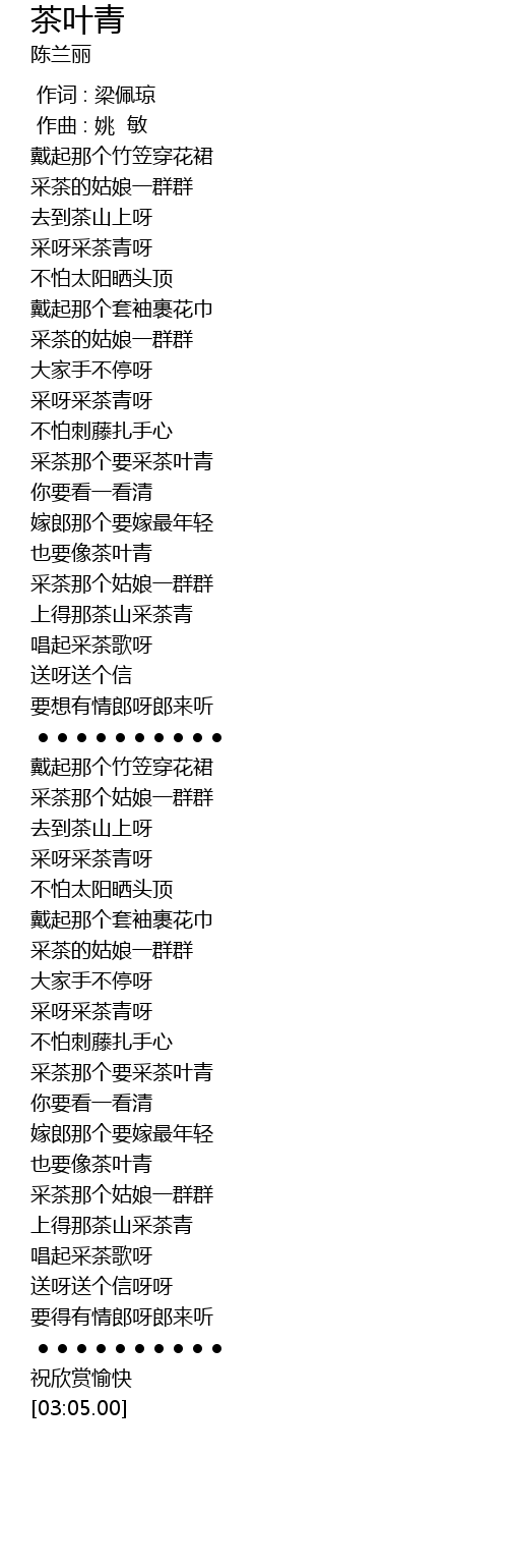 | [02:05.20] | cǎi ya cǎi chá qīng ya |