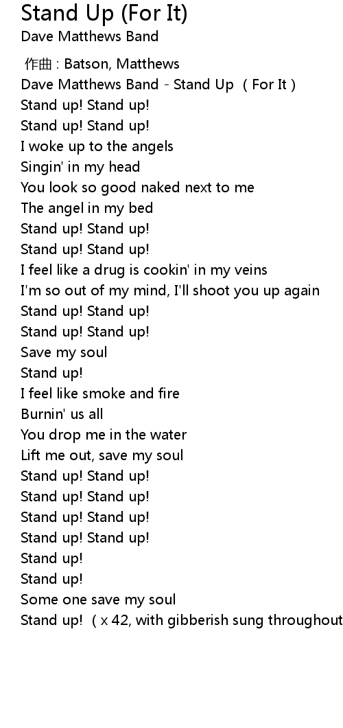 | [00:00.00] | Dave Matthews Band - Stand Up (For It) |