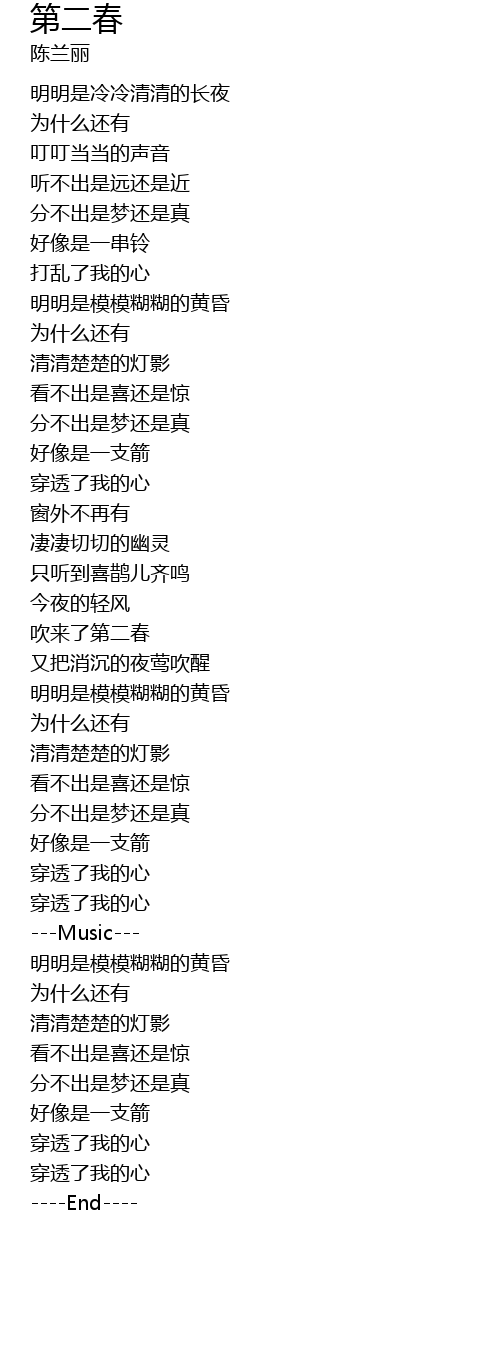 | [01:41.95] | 吹来了第二春 |