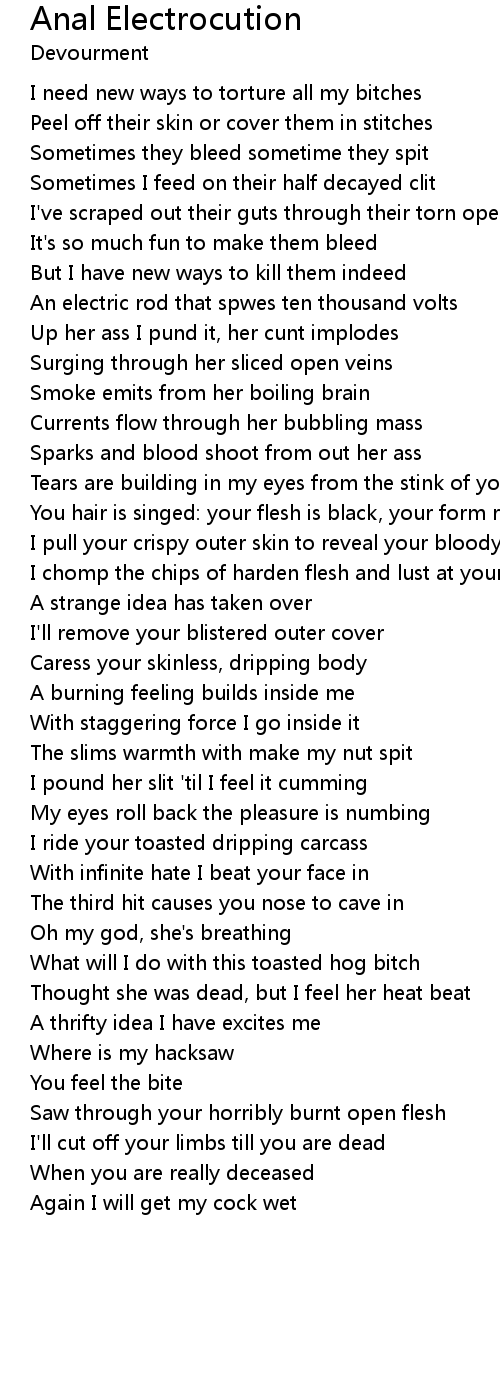 Sparks and blood shoot from out her ass |