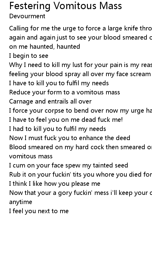 Calling for me the urge to force a large knife through your skin and insert it again and again just to see your blood smeared on your face and then splattered on me haunted, haunted |