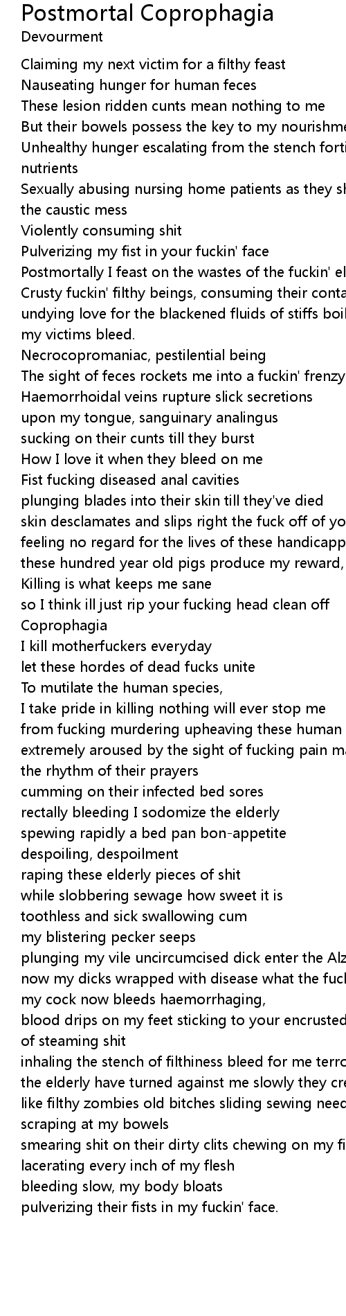Postmortally I feast on the wastes of the fuckin' elderly |