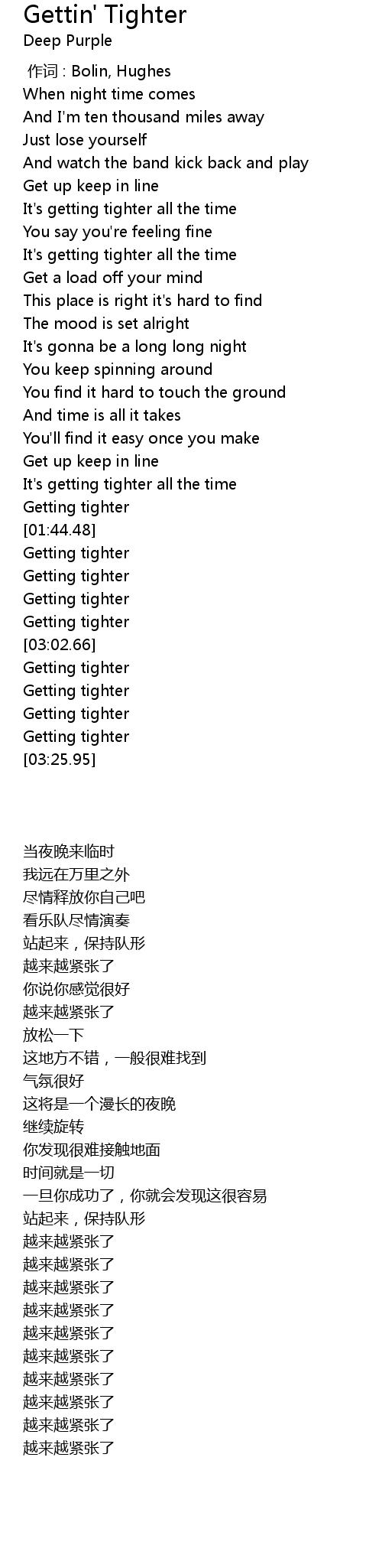 | [00:58.10] | It's getting tighter all the time |