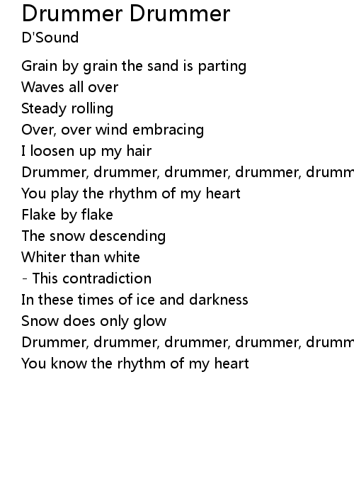 | Drummer, drummer, drummer, drummer, drummer x 3 | |