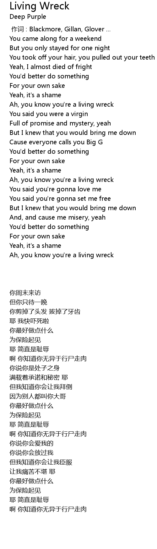 | [02:03.54] | Ah, you know you're a living wreck |