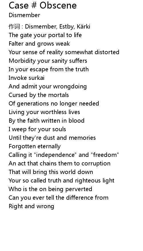 | Album | Indecent & Obscene [Candlelight/Regain 2005] |