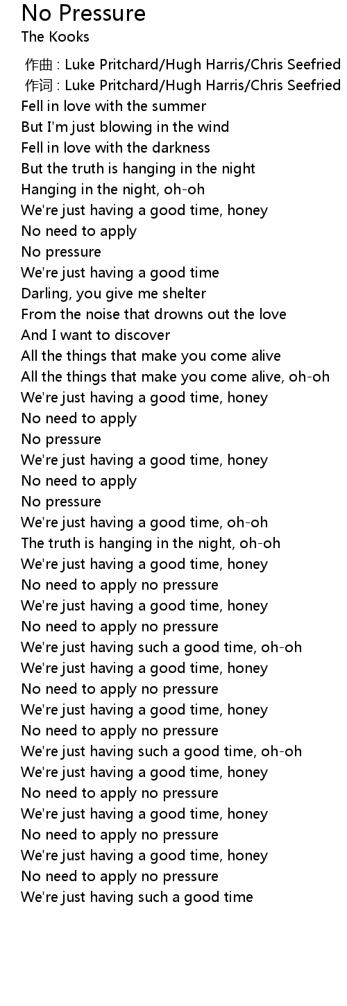 | [03:24.34] | No need to apply no pressure |