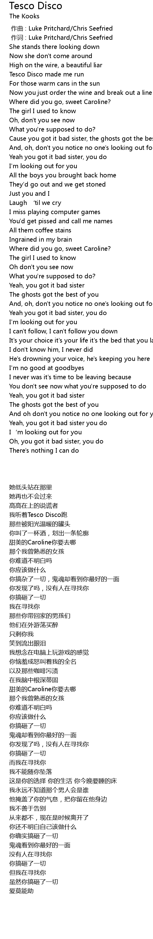 | [00:01.000] | 作词 : Luke Pritchard/Chris Seefried |
