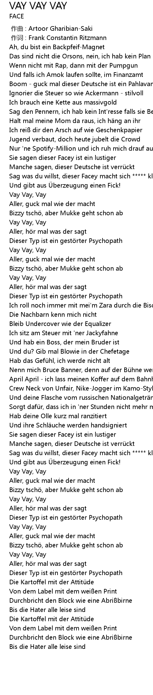 | [00:50.75] | Sag was du willst, dieser Facey macht sich ***** klar |