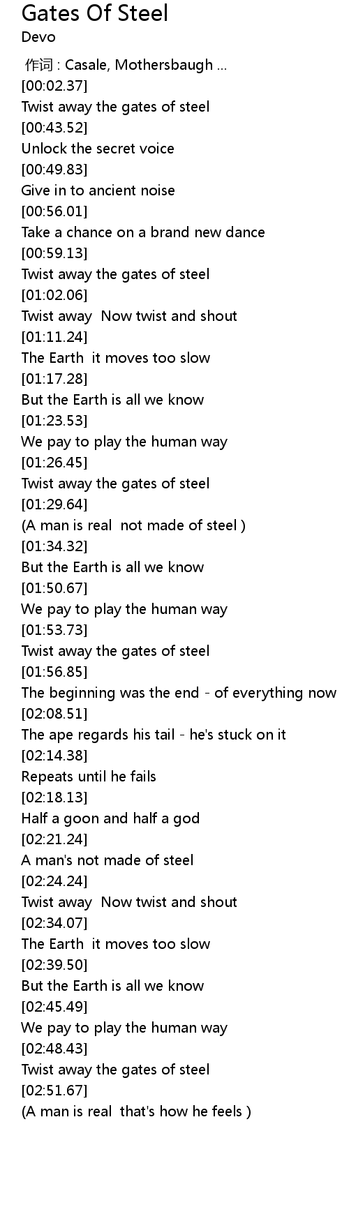 | [00:00.00] | 作词 : Casale, Mothersbaugh ... |