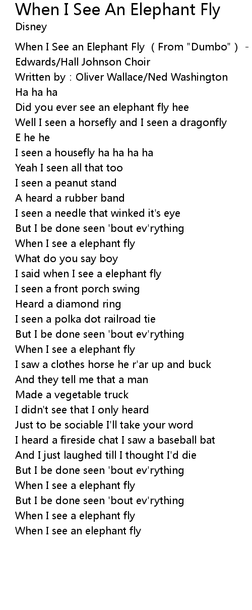 | [00:01.641] | Did you ever see an elephant fly hee |
