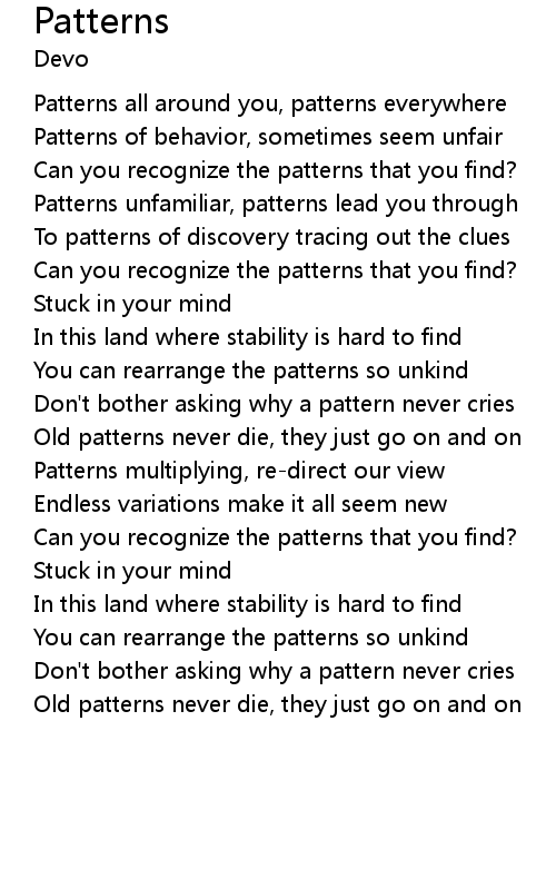 Don't bother asking why a pattern never cries |