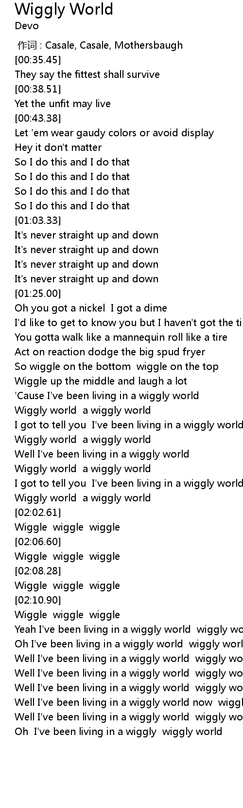| [02:26.49] | Well I' ve been living in a wiggly world now wiggly world |
