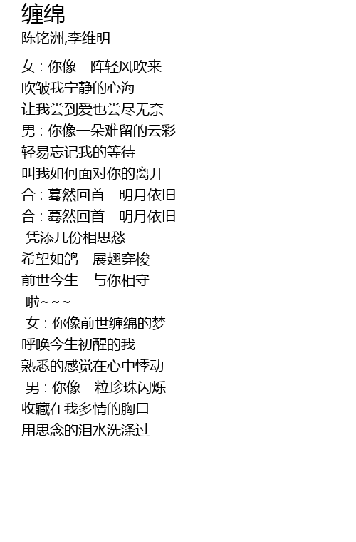 | [02:45.99] | 女 : 你像前世缠绵的梦 |