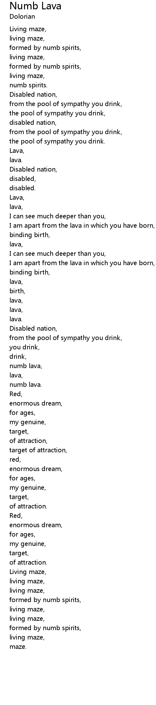 | numb lava, | |