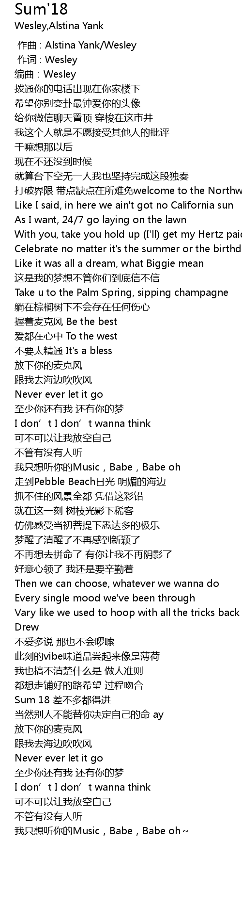 | [00:00.000] | 作曲 : Alstina Yank/Wesley |