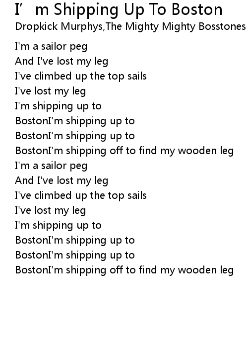 | BostonI'm shipping off to find my wooden leg |