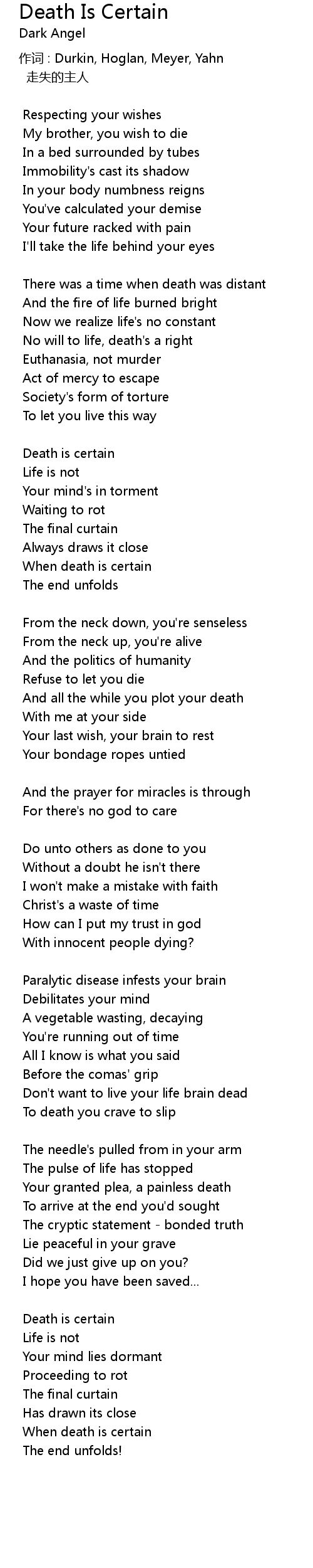 | Song | Death Is Certain |
