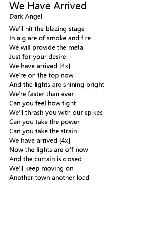 | Song | We Have Arrived |