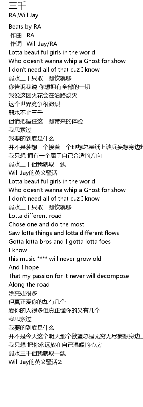 | [00:39.129] | ruò shuǐ bù zhǐ sān qiān |