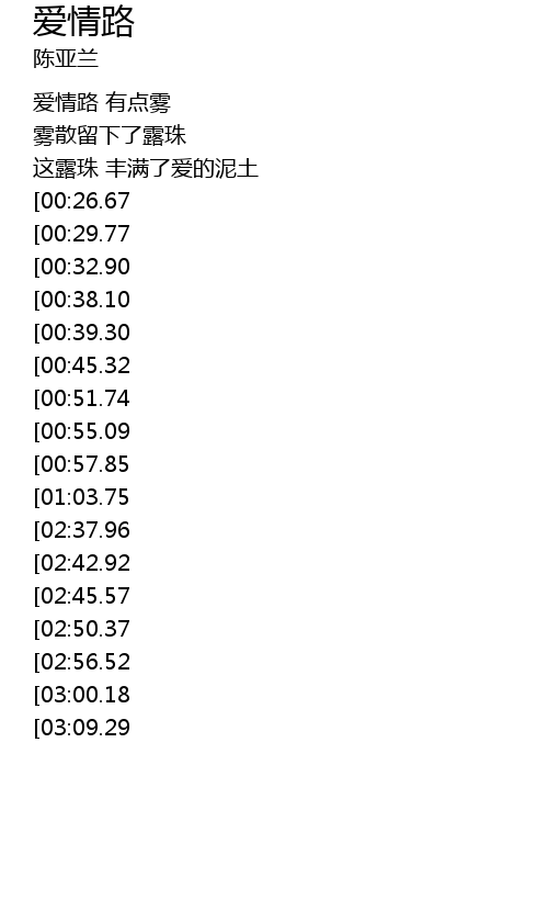 | [02:00.60][00:26.67] | 爱情路 弯弯路 |