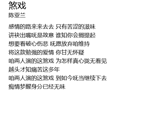 | 想要看破心伤悲 呒愿放弃咱维持 | |