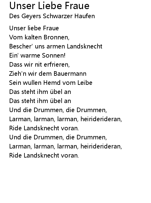 | Song | Unser Liebe Fraue |