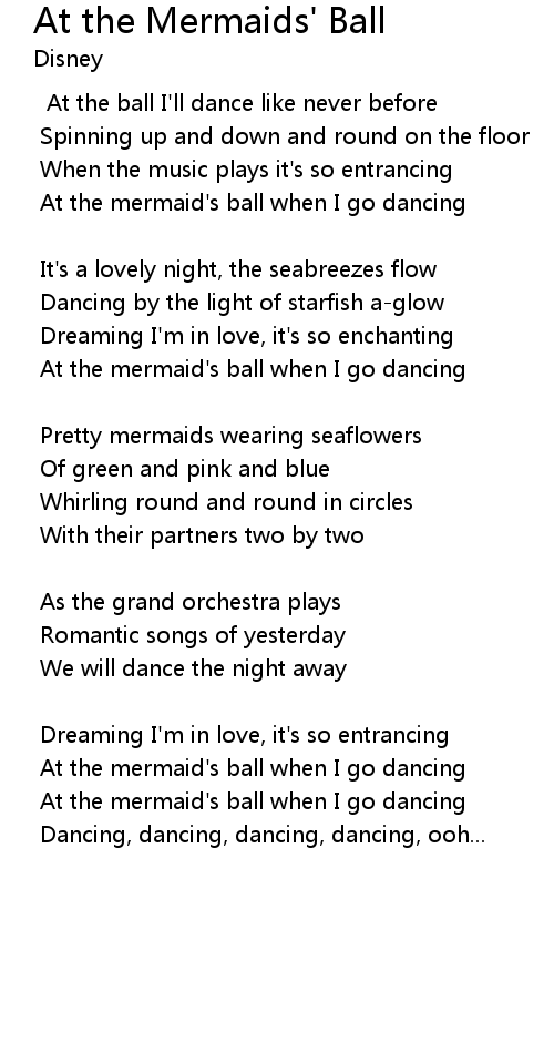 At the mermaid's ball when I go dancing |