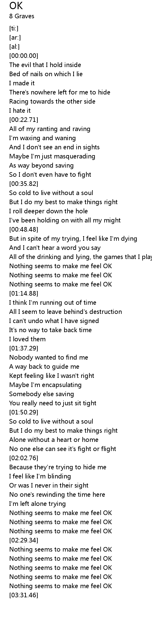 | [03:14.57] | Nothing seems to make me feel OK |