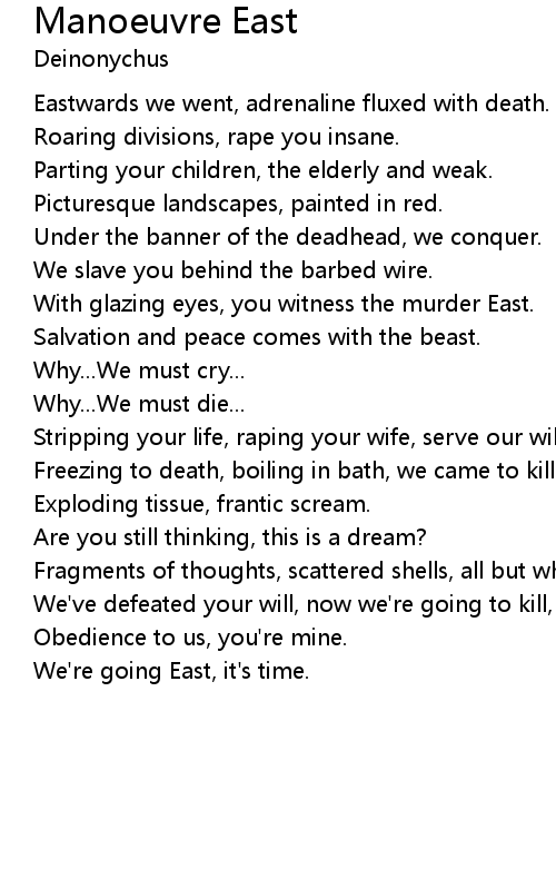 Eastwards we went, adrenaline fluxed with death. |