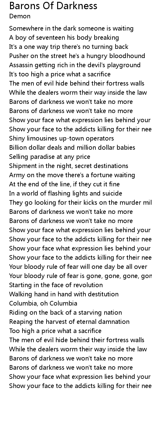 Barons of darkness we won't take no more |