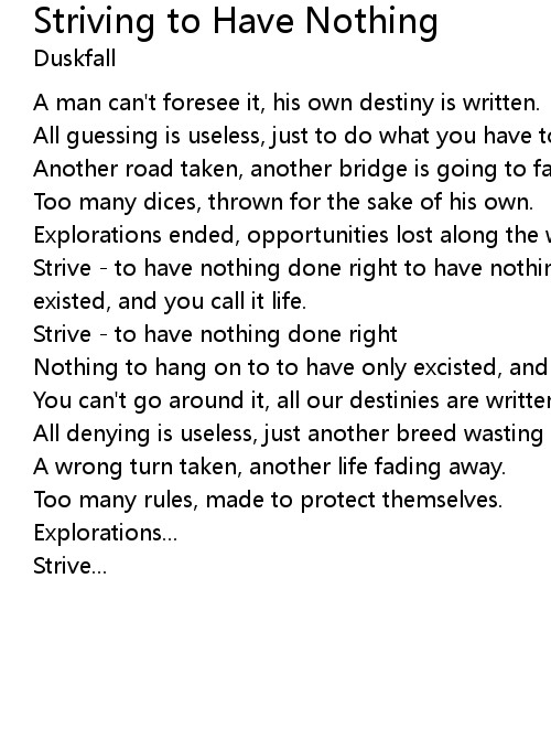 | Strive - to have nothing done right to have nothing to live for to have only existed, and you call it life. | |