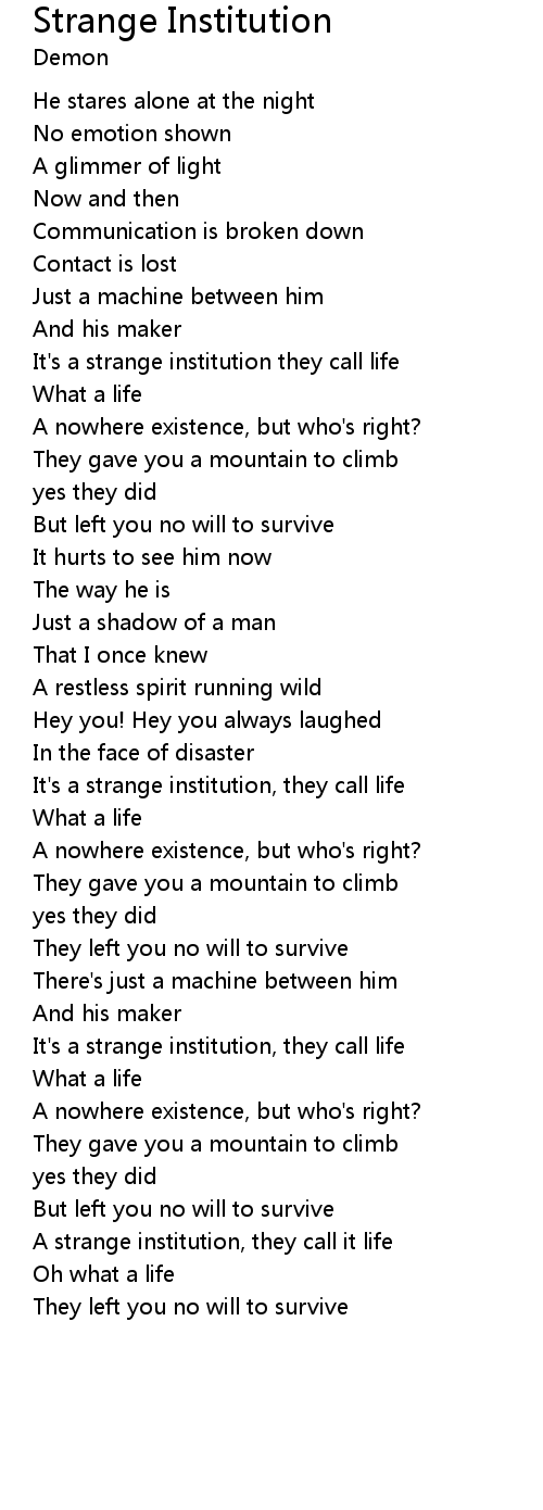It's a strange institution, they call life |