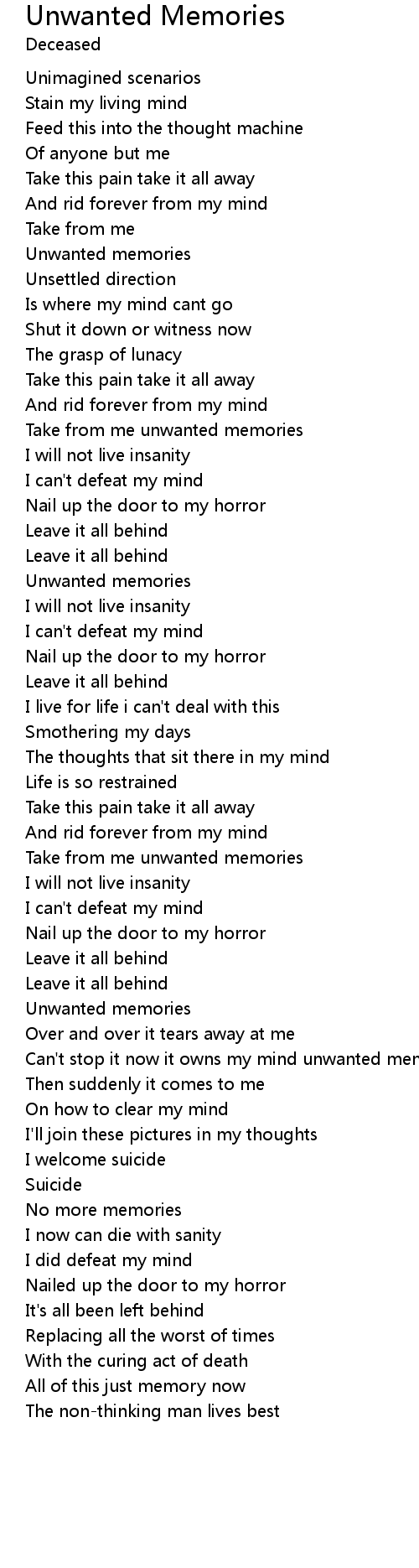 Can't stop it now it owns my mind unwanted memories |
